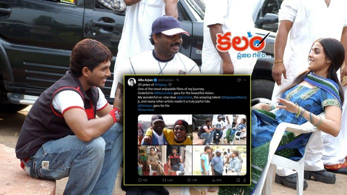 2006 లో విడుదలైన హ్యపీ సినిమా నేటికీ (జనవరి 27) 20 ఏళ్లు పూర్తి చేస్తుంది. ఈ సందర్భంగా అల్లు అర్జున్ ఇంట్రెస్టింగ్ ట్వీట్ చేశారు. హ్యాపీ సినిమా నా కెరీర్ లో ఎప్పటికీ మరచిపోని చిత్రంగా నిలిచింది. బ్యూటిఫుల్ విజన్ తో ఈ సినిమాను దర్శకుడు కరుణాకరన్ గారు అద్భుతంగా తెరకెక్కించారు. వండర్ ఫుల్ కో స్టార్స్ జెనీలీయా, మనోజ్ భాజ్ పేయిలతో కలిసి నటించడం ఎంతో ఆనందంగా ఉంది. ఫీల్ గుడ్ మ్యూజిక్ అందించిన యువన్ శంకర్ రాజాకు, అలాగే సాంకేతిక నిపుణులందరికి హృదయపూర్వక కృతజ్ఞతలు చెబుతూ.. అల్లు అర్జున్ అప్పటి మధుర జ్ఞాపకాలను పంచుకున్నారు.