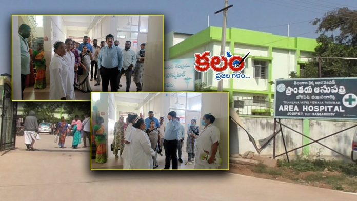 కలం మెదక్ బ్యూరో : సంగారెడ్డి (Sangareddy) జిల్లా జోగిపేట ప్రభుత్వాసుపత్రిని (Jogipet Government Hospital) రాష్ట్ర వైద్య విధాన పరిషత్ కమిషనర్ అజయ్ కుమార్ (Ajay Kumar) ఆకస్మికంగా తనిఖీ చేసారు. టైంకి రాని డ్యూటీ డాక్టర్లపై అజయ్ కుమార్ ఆగ్రహం వ్యక్తం చేశారు. ఆసుపత్రిలో 22 మంది డాక్టర్ల ఉంటే కేవలం ఐదు మంది డాక్టర్లే డ్యూటీలో ఉండటం ఏంటని వైద్య విధాన పరిషత్ కమిషనర్ సీరియస్ అయ్యారు.
