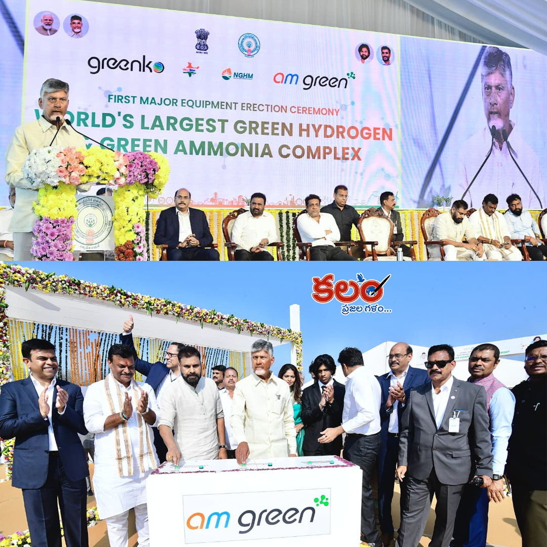 కలం, వెబ్ డెస్క్ : కాకినాడలో AM గ్రీన్ అమ్మోనియా ప్రాజెక్టు శంకుస్థాపనలో పాల్గొన్న సీఎం చంద్రబాబు (Chandrababu) కీలక వ్యాఖ్యలు చేశారు. కూటమి ప్రభుత్వంలో సంక్షేమానికి పెద్ద పీట వేశామని తెలిపారు. ముందు ఇచ్చిన సంక్షేమం కంటే మెరుగైన సంక్షేమం ఇస్తామని, సూపర్ సిక్స్ (Super Six) హామీని సూపర్ హిట్ చేశామని చంద్రబాబు తెలిపారు.