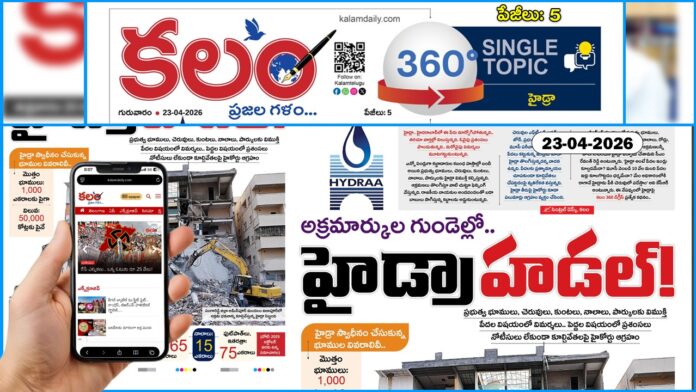 అసలు హైడ్రా ఇప్పటి వరకు ఎన్ని ఎకరాల ప్రభుత్వ భూములు కాపాడింది? ఎక్కడెక్కడ ఆక్రమణలు తొలగించింది? చెరువులు, కుంటలు, నాలాలు, పార్కులు, రోడ్లపై ఆక్రమణలను తొలగించిందా? ప్రభుత్వానికి ఎన్ని వేల కోట్ల ఆస్తులు తిరిగి వచ్చాయి? తదితర అంశాలపై కలం 360 డిగ్రీస్ ప్రత్యేక కథనం చదివేందుకు కింద ఉన్న పేపర్ ఇమేజ్ పైన క్లిక్ చేయండి.