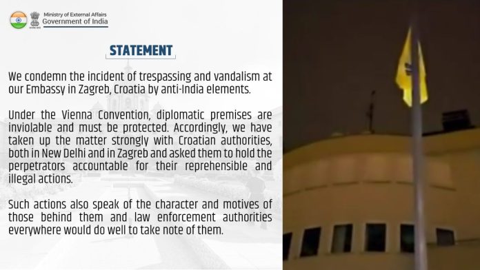 వియన్నా కన్వెన్షన్ ప్రకారం రాయబార కార్యాలయాలు పూర్తిగా రక్షణలో ఉండాలని, వాటిని అపవిత్రం చేయరాదని విదేశాంగ మంత్రిత్వ శాఖ‌ గుర్తు చేసింది. ఈ ఘటనకు బాధ్యులైన వారిపై కఠిన చర్యలు తీసుకోవాలని క్రొయేషియా అధికారులను కోరింది. రిపబ్లిక్ డే సమీపిస్తున్న వేళ భారత్‌ను లక్ష్యంగా చేసుకొని ఈ చర్యలు చేపట్టినట్లు తెలుస్తోంది. రాయబార కార్యాలయం వద్ద భార‌త్‌కు వ్య‌తిరేకంగా నినాదాలు చేసినట్టు సమాచారం. సాధారణంగా అమెరికా, కెనడా, యూకే, ఆస్ట్రేలియా, న్యూజిలాండ్ వంటి దేశాల్లో కార్యకలాపాలు నిర్వహించే ఖ‌లిస్తాన్ వేర్పాటువాదులు ఈసారి యూరోపియన్ యూనియన్ సభ్యదేశమైన క్రొయేషియాలో దాడికి ప్రయత్నించడం తీవ్ర చ‌ర్చ‌నీయాంశంగా మారింది. ఇటీవ‌లి కాలంలో భారత్–క్రొయేషియా సంబంధాలు బలపడుతున్నాయి. గతేడాది కెనడాలో జరిగిన జీ7 సదస్సు అనంతరం ప్రధాని నరేంద్ర మోడీ క్రొయేషియా(Croatia)ను సందర్శించారు. ఈ నేపథ్యంలో జాగ్రెబ్(Zagreb) ఘటనపై భారత్ తీవ్ర ఆందోళన వ్యక్తం చేసింది.