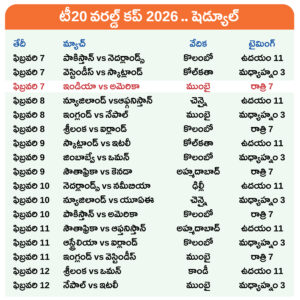 ఈ నెల 7నుంచి మొదలయ్యే టీ 20 వరల్డ్ కప్ లో మొత్తం 55 మ్యాచ్లు ఉంటాయి. ఇండియాలో 33 మ్యాచులు ఆడుతారు. ముంబై, ఢిల్లీ, అహ్మదాబాద్, కోల్కతా, చెన్నై వేదికలు కానున్నాయి. శ్రీలంకలో 22 మ్యాచ్లు ఆడుతారు. కొలంబోలోని రెండు, కాండీలోని ఒక స్టేడియంలో ఈ మ్యాచ్లు నిర్వహిస్తారు. సెమీ ఫైనల్స్ ముంబై, కోల్కతా వేదికగా జరుగుతాయి. ఫైనల్ అహ్మదాబాద్లోని నరేంద్ర మోదీ స్టేడియంలో జరుగుతుంది. ఒకవేళ శ్రీలంక జట్టు ఫైనల్కు చేరితే.. మాత్రం అది కొలంబోలో జరిగే చాన్స్ ఉంది.