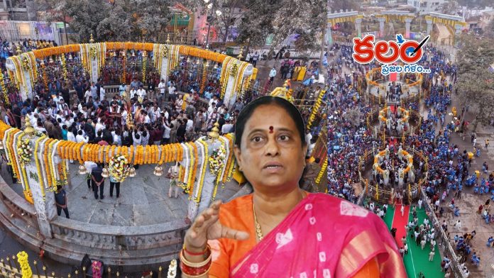 కలం, వరంగల్ బ్యూరో : మేడారం మహా జాతరలో దేవాదాయశాఖ మంత్రి కొండా సురేఖ (Konda Surekha) కనిపించకపోవడం చర్చకు దారి తీసింది. దేవాదాయ శాఖ ఆధ్వర్యంలో జరుగుతున్న ఈ ఉత్సవానికి ఆమె దూరంగా ఉండటం పట్ల అభిమానులు అసహనం వ్యక్తం చేస్తున్నారు. జిల్లా ఇంచార్జి మంత్రి పొంగులేటి శ్రీనివాస్ రెడ్డి (Ponguleti Srinivasa Reddy), మంత్రి సీతక్క (Seethakka) జాతర పనులు ప్రారంభం నుంచి పర్యవేక్షిస్తూ వస్తున్నారు. సీతక్క జాతర ప్రారంభానికి రెండు రోజుల ముందు నుంచి మేడారంలోనే ఉంటూ ఏర్పాట్లు పరిశీలిస్తున్నారు. అంతే కాకుండా మంత్రులు పొంగులేటి, అడ్లూరి లక్ష్మణ్ కుటుంబ సభ్యులతో కలిసి అమ్మవార్లను దర్శించుకున్నారు. కానీ జిల్లాకు చెందిన మంత్రి, అందులో దేవాదాయ శాఖను లీడ్ చేస్తున్న సురేఖ జాతరకు దూరంగా ఉండటం పట్ల భిన్న వాదనలు వినిపిస్తున్నాయి.