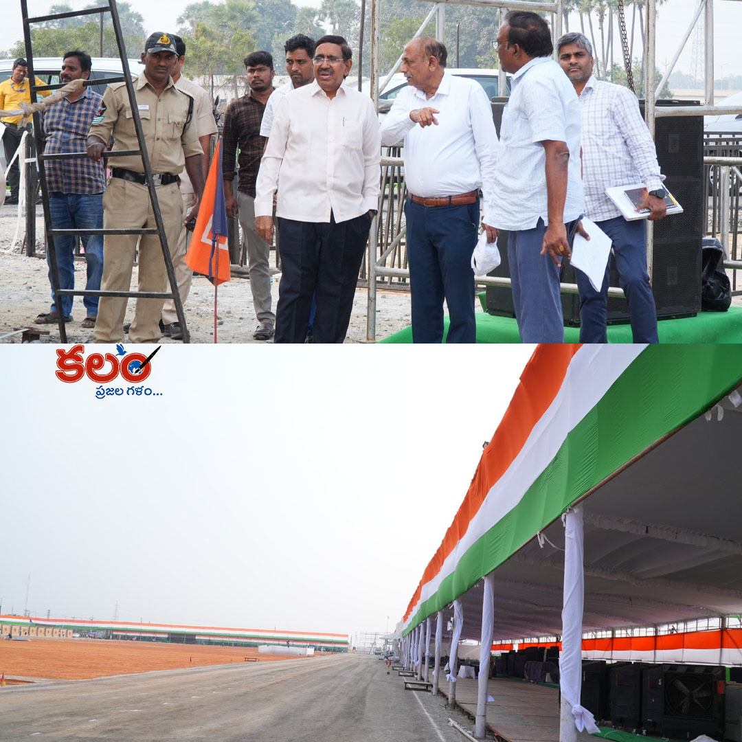 కలం, వెబ్ డెస్క్: ఆంధ్రప్రదేశ్ రాజధాని అమరావతిలో (Amaravati) ఈ ఏడాది తొలిసారిగా రిపబ్లిక్ డే (Republic Day) వేడుకలు జరుగనున్నాయి. ఈ సందర్భంగా సీడ్ యాక్సెస్ రోడ్డు సమీపంలో మంత్రుల బంగ్లాల ఎదురుగా పరేడ్ గ్రౌండ్లో భారీ ఏర్పాట్లు చేస్తున్నారు. ఈ ఏర్పాట్లను మంత్రి నారాయణ (Minister Narayana) శనివారం ఉదయం పరిశీలించారు. గ్రౌండ్లో జరుగుతున్న పనులపై ఆరా తీశారు. వేడుకల రోజు ఎలాంటి ఇబ్బందులు తలెత్తకుండా అప్రమత్తంగా వ్యవహరించాలని అధికారులను ఆదేశించారు. రిపబ్లిక్ డే కోసం పరేడ్ గ్రౌండ్లో అన్ని ఏర్పాట్లు దాదాపు పూర్తికావొచ్చాయి. వీవీఐపీ, వీఐపీ పార్కింగ్కు 15 ఎకరాలు కేటాయించారు. 25 ఎకరాల్లో పబ్లిక్ పార్కింగ్కు ఏర్పాట్లు చేశారు. వేడుకల్లో మొత్తం 13 వేల మంది కూర్చునేందుకు అవకాశం ఉంది. అమరావతి రైతులకు ప్రత్యేకంగా వీఐపీ గ్యాలరీని ఏర్పాటు చేశారు.