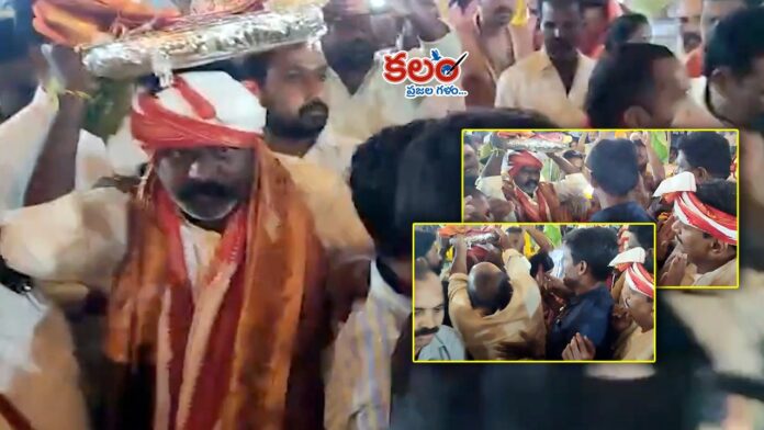 కలం, వెబ్ డెస్క్ : ఎన్టీఆర్(NTR)  జిల్లాలోని గంపలగూడెం మండలం నెమలి గ్రామంలో జరిగిన శ్రీ వేణుగోపాల స్వామివారి కళ్యాణ మహోత్సవం ఈసారి భక్తి వాతావరణంతో పాటు రాజకీయ వివాదానికి దారి తీసింది. వేడుకలో భాగంగా స్వామివారికి సమర్పించాల్సిన పట్టు వస్త్రాలను ఎంపీ కేశినేనీ శివనాథ్ (Kesineni Sivanath)  తలపై ఉంచి సమర్పించే సంప్రదాయం కొనసాగుతుండగా, ఎమ్మెల్యే కొలికిపూడి శ్రీనివాస రావు (Kolikapudi Srinivasa Rao)  ఆ వస్త్రాలను ఒక్కసారిగా లాక్కోవడం తీవ్ర వివాదానికి దారి తీసింది. ఈ చర్యను చాలా మంది అనుచిత ప్రవర్తనగా భావించారు. ఈ ఘటనకు సంబంధించిన దృశ్యాలు సోషల్ మీడియాలో వైరల్ కావడంతో విషయం రాష్ట్రవ్యాప్తంగా చర్చనీయాంశమైంది. అయితే, ఎంపీ కేశినేని శివనాథ్ దంపతులు సంయమనం పాటిస్తూ భక్తుల మధ్యే కూర్చొని కళ్యాణ మహోత్సవాన్ని శాంతియుతంగా కొనసాగించారు.