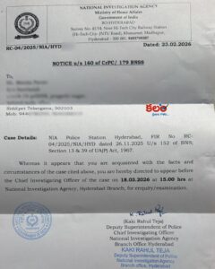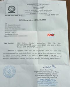 మావోయిస్టు సంబంధిత కేసుల్లో ఎన్ఐఏ నోటీసులు :