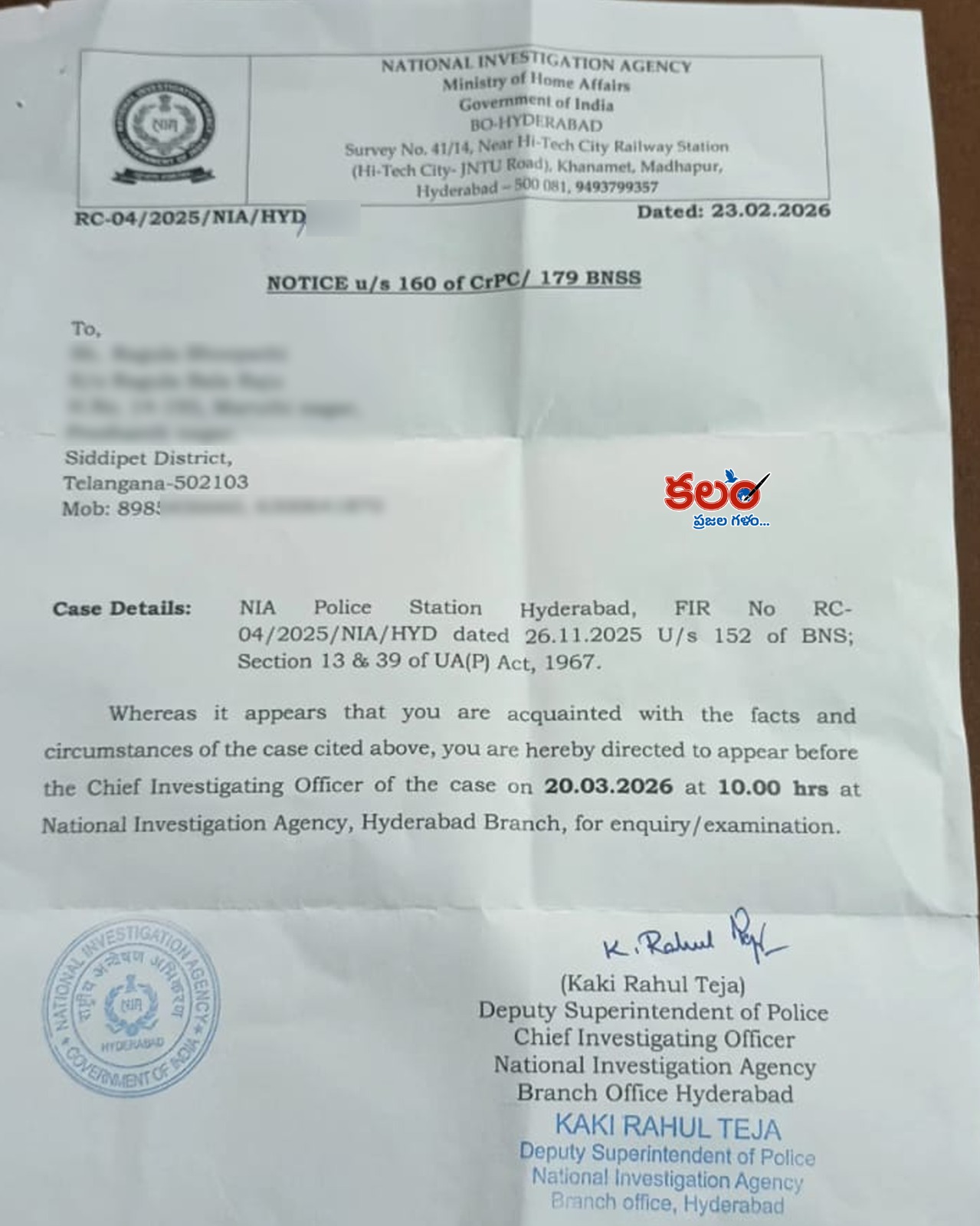 మావోయిస్టు పార్టీకి, అందులో పనిచేస్తున్న నేతలకు మద్దతుగా వ్యాఖ్యలు చేయడం, ఆ పార్టీ సిద్ధాంతాలను, రాజకీయాలను ఎంకరేజ్ చేయడం.. వీటికి సంబంధించి ఎన్ఐఏ (NIA) గతంలో పలువురిపై కేసులు నమోదు చేసింది. ఆపరేషన్ కగార్లో భాగంగా మావోయిస్టు పార్టీ కేంద్ర కమిటీ సభ్యుడు కాతా రామచంద్రారెడ్డి గతేడాది సెప్టెంబరులో ఎన్కౌంటర్లో చనిపోయిన తర్వాత ఆయన సంస్మరణ సభలో చేసిన ప్రసంగాల నేపథ్యంలో ఈ కేసును (నెం. 4/-2025) నమోదు చేసినట్లు నోటీసులు అందుకున్నవారి అనుమానం. చనిపోయిన మావోయిస్టుకు మద్దతుగా, కగార్కు వ్యతిరేకంగా, కేంద్ర ప్రభుత్వ నిర్ణయాన్ని తప్పుపట్టేలా మాట్లాడారని, అందువల్లనే భారత్ న్యాయ సంహితలోని సెక్షన్ 152, ‘ఉపా’ చట్టంలోని సెక్షన్ 13, 39 కింద అభియోగాలు నమోదయ్యాయి. కొందరిని ఈ నెల 18న, మరికొందరిని 20న విచారణకు రావాలని ఆ నోటీసుల్లో ఎన్ఐఏ చీఫ్ ఇన్వెస్టిగేషన్ ఆఫీసర్ పేర్కొన్నారు.