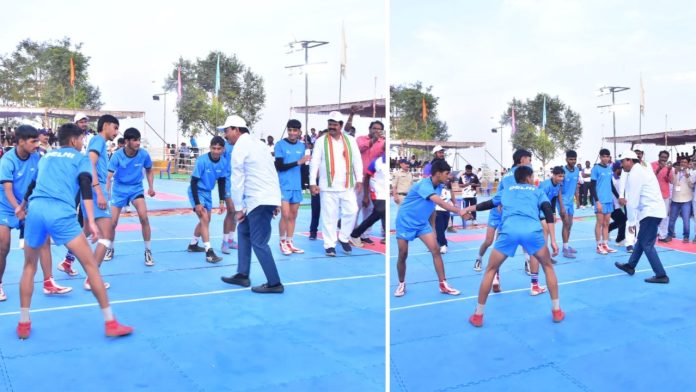 కలం, ఖమ్మం బ్యూరో: భద్రాద్రి కొత్తగూడెం జిల్లా ఏడుళ్లబయ్యారంలో జరుగుతున్న 69వ జాతీయ బాలుర కబడ్డీ పోటీల్లో ఆసక్తికర దృశ్యం చోటుచేసుకుంది. శుక్రవారం ఈ పోటీలకు హాజరైన రాష్ట్ర రెవెన్యూ మంత్రి పొంగులేటి శ్రీనివాస్ రెడ్డి (Minister Ponguleti), తన అధికార హోదాను పక్కనపెట్టి స్వయంగా క్రీడాకారుడిలా మారి మైదానంలోకి దిగారు.
