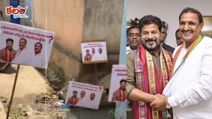 -సీఎం రేవంత్, అరికేపూడి గాంధీల ఫోటోలను మురికి కాలువల్లో ఉంచి నిరసన